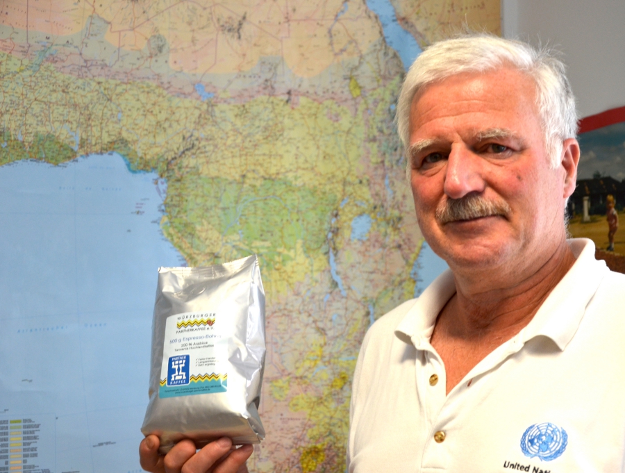 Klaus Veeh (rechts) treibt den Gedanken „Nachhaltigkeit“ beim Würzburger Partnerkaffee voran. Foto: Pat Christ