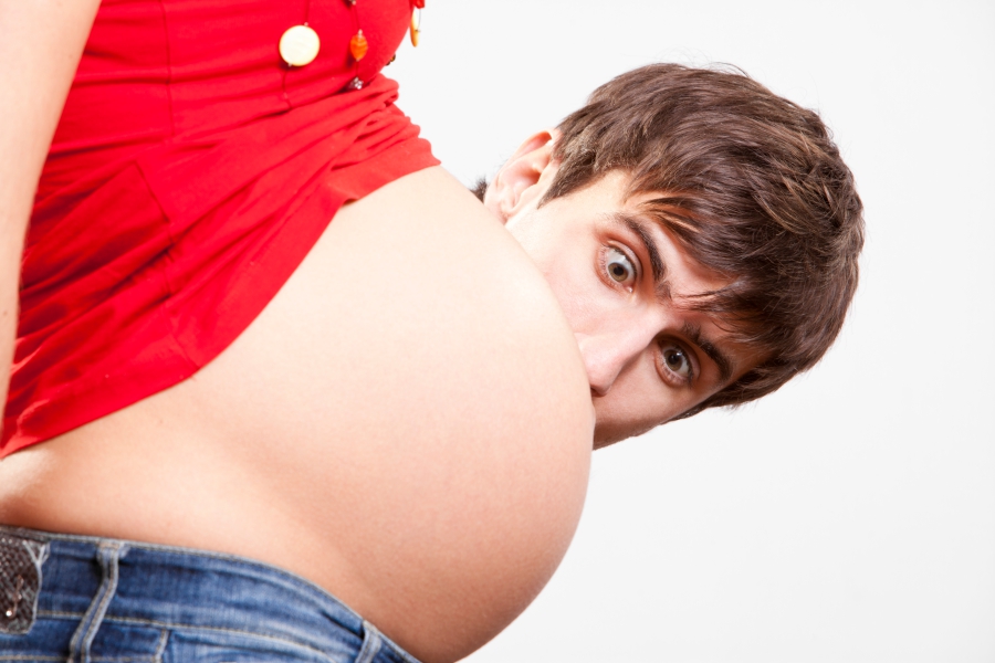 Foto: depositphotos.com/©mitrofan Surprised man peek out from behind the pregnant belly 0 am 25. Juli 2017 Share. Twitter Facebook Pinterest LinkedIn Tumblr Email