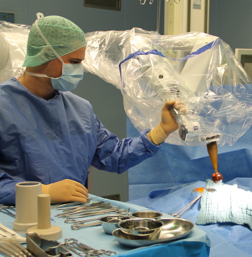 Die Applikator-Kugel wird an einem Auslegerarm in die bei der OP entstandene Tumorhöhle eingeführt. Foto: OP-Team Universitätsfrauenklinik Würzburg IORT 02 0 am 26. April 2016 Share. Twitter Facebook Pinterest LinkedIn Tumblr Email