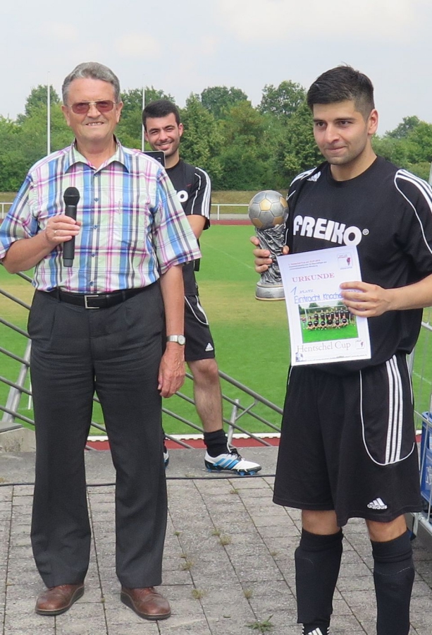 Stiftungsgründer Günter Hentschel (links) gratuliert Vertretern der Siegermannschaft „Eintracht Knochenmühle“. Foto: Margot Rössler/Universitätsklinikum Würzburg Siegerteam Hentschel Cup 2016d 0 am 26. Juli 2016 Share. Twitter Facebook Pinterest LinkedIn Tumblr Email