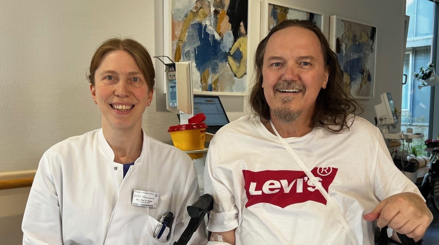 Eigentlich hat Björn Gerer Freude an der Gartenarbeit zuhause, doch an diesem Samstag war das anders: „Ich fühlte mich total erschöpft, alles war anstrengend, selbst wenige Schritte. Ich war einfach total platt.“ An einen Herzinfarkt dachte der 56-Jährige aus Boxberg im Main-Tauber-Kreis zunächst nicht in diesem Frühjahr. Er hatte keine speziellen Schmerzen in der Brust. Zwei Tage später brachte ihn seine Frau ins Krankenhaus. Dort dann die Diagnose: Herzinfarkt mit Einriss der Herztrennwand, im Fachbegriff Septum. In seiner Herztrennwand, welche die linke und rechte Herzkammer trennt, war ein etwa zwei Zentimeter großes Loch. Damit fließt das Blut nicht wie sonst von der linken Herzkammer in den Körperkreislauf, sondern läuft fälschlicherweise zurück und es kommt zum Rückstau. Eine lebensbedrohliche Situation, Björn Gerer wurde dann notfallmäßig in das Universitätsklinikum Würzburg (UKW) verlegt.