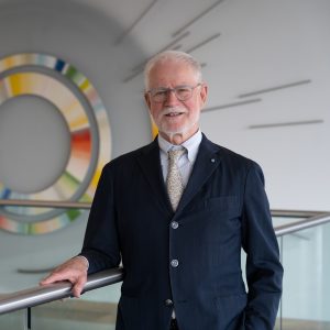 Prof. Dr. Dr. h.c. Christoph Reiners leitete von 1994 bis 2010 die Klinik und Poliklinik für Nuklearmedizin des Uniklinikums Würzburg (UKW). Außerdem lenkte er von 2001 bis 2015 als Ärztlicher Direktor die Geschicke des unterfränkischen Krankenhauses der Maximalversorgung. Neben den Erfolgen in diesen Führungsrollen war seine Karriere von vielen wissenschaftlichen, klinischen und humanitären Leistungen geprägt. Das UKW nahm den diesjährigen 80. Geburtstag des Mediziners zum Anlass, sein Lebenswerk mit einem eintägigen Symposium zu ehren. Auf Einladung von Prof. Dr. Andreas Buck, Reiners Nachfolger als Direktor der Klinik für Nuklearmedizin, kamen am 21. März dieses Jahres rund 100 Gäste im Hörsaal des Zentrums für Innere Medizin (ZIM) des UKW zusammen. Während in den Vorträgen des Nachmittags namhafte Fachleute – viele von ihnen langjährige berufliche Weggefährten des Jubilars – zu aktuellen nuklearmedizinischen Themen referierten, setzten die Grußworte und Vorträge des Vormittags Schlaglichter auf Reiners Wirken und seine Persönlichkeit.