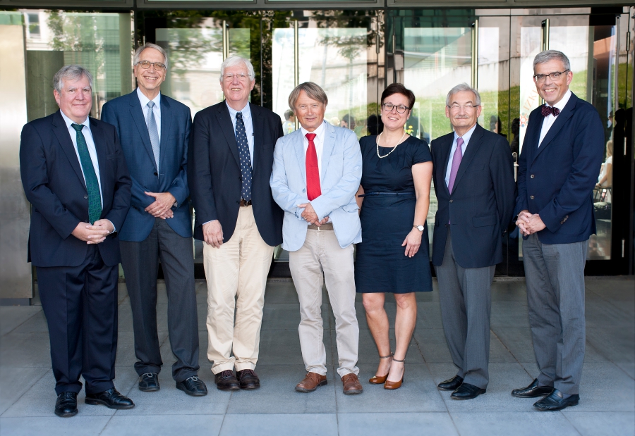 v.l.n.r.: Prof. Dr. Wolfgang Riedel (Vizepräsident der Universität Würzburg), Prof. Dr. Dietrich Kabelitz (Sprecher des Externen Wissenschaftlichen Beirats des IZKF, Universitätsklinikum Schleswig-Holstein), Prof. Dr. Konrad Müller-Hermelink, (Sprecher des IZKF von 1996 - 2009), Prof. Dr. Thomas Hünig (Sprecher des IZKF), Dr. Thelen-Frölich, Geschäftsführerin des IZKF, Prof. Dr. Georg Ertl (Ärztlicher Direktor des Universitätsklinikums Würzburg), Prof. Dr. Matthias Frosch (Dekan der Medizinischen Fakultät Würzburg)