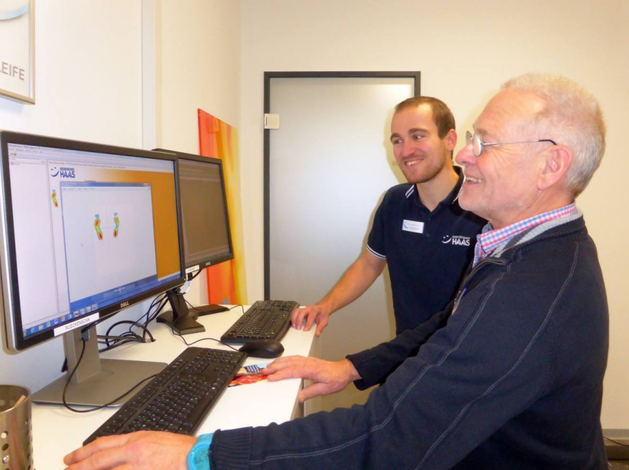 Patrick Matthäus und Gerhard Fischer vom Sanitätshaus Haas werten die Ergebnisse des Körperscans aus. Foto: Rodegra Haas Körperstatik 0 am 13. April 2016 Share. Twitter Facebook Pinterest LinkedIn Tumblr Email