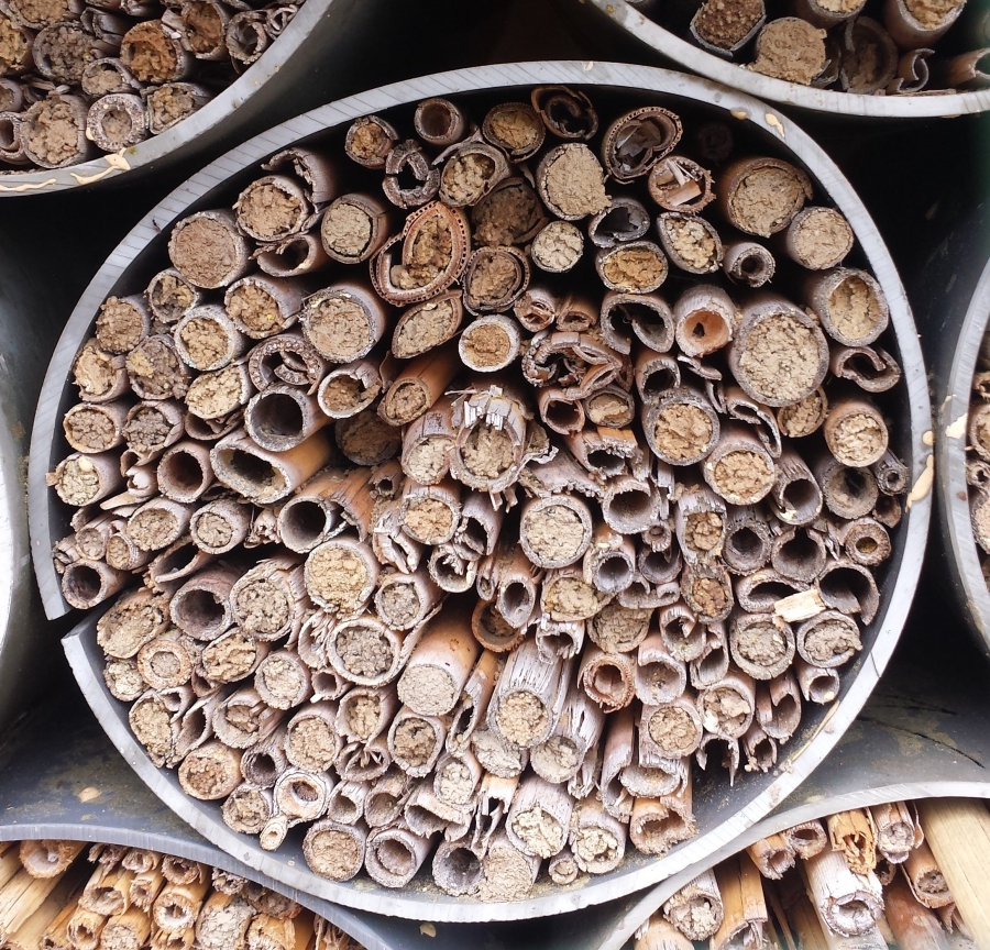 Nisthilfe mit Schilfhalmen für solitäre Bienen. Nestverschlüsse aus Lehm lassen erkennen, in welchen Schilfhalmen Nester angelegt sind. Foto: Mariela Schenk 0629Nisthilfe 0 am 30. Juni 2017 Share. Twitter Facebook Pinterest LinkedIn Tumblr Email