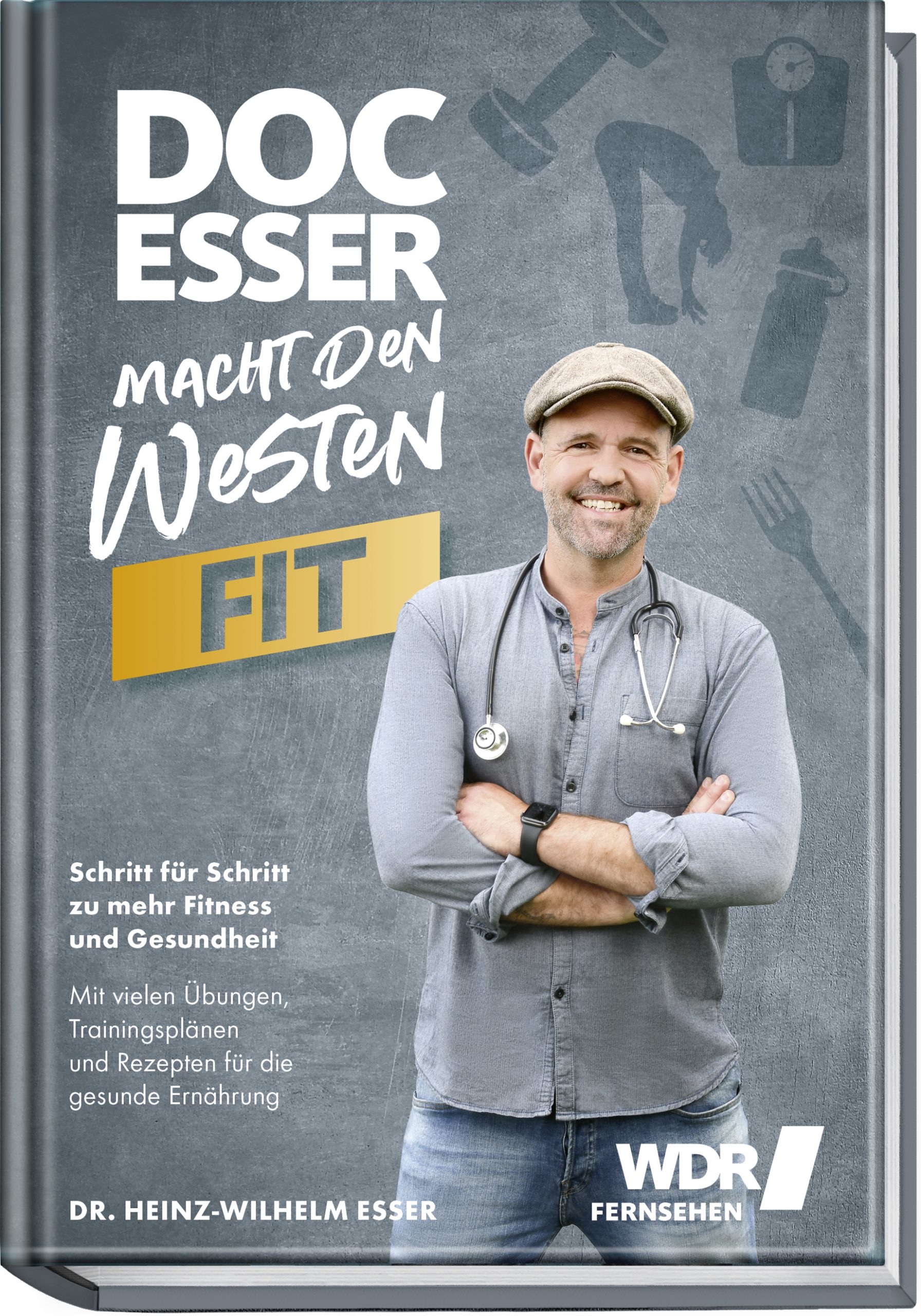 Es sei nie zu spät anzufangen, mit gesunder Ernährung und Bewegung, schreibt Dr. Heinz-Wilhelm Esser, Facharzt für Innere Medizin, Pneumologie, Kardiologie und Notfallmedizin in „Doc Esser macht den Westen fit.“ Wie man Schritt für Schritt zu mehr Fitness im Alltag gelangt, darüber klärt der „Arzt für den Westen“ zusammen mit Marwin Isenberg, Sportwissenschaftler und medizinischer Trainingstherapeut, Bettina Matthaei, Inhaberin einer Hamburger Gewürzmanufaktur und mehrfach ausgezeichnete Buchautorin, und Dr. Jon Chim Bai-Habelski, Diplom-Oectrophologin und Ernährungsberaterin/DGE auf. Sie servieren vom Trainingsplan mit Runner’s High über Dehnübungen zur Vermeidung von Muskelkrämpfen bis hin zu einem Speiseplan mit Spargel-Omelett oder Hähnchenstreifen mit Spitzkohl alle Ingredienzien, die zu einer Lebensstiländerung taugen. Und sie beantworten Fragen: Wie entsteht Muskelkater? Was tun gegen Blasen? Brauche ich Nahrungsergänzungsmittel? Oder: Wann ist Sport kontraproduktiv? „Doc Esser“ macht auch keinen Hehl daraus, dass ihm ein unsportlicher, normalgewichtiger Mensch mehr beunruhigt als ein korpulenter, der sich regelmäßig bewegt. Und er betont: „Wir alle müssen unsere Komfortzone zwei- bis dreimal pro Woche verlassen und wieder mehr an unsere Grenzen gehen, wie es Kinder jeden Tag tun. So bleiben wir jung und beweglich und profitieren von unserem natürlichen Bewegungsdrang“, sagt Esser.