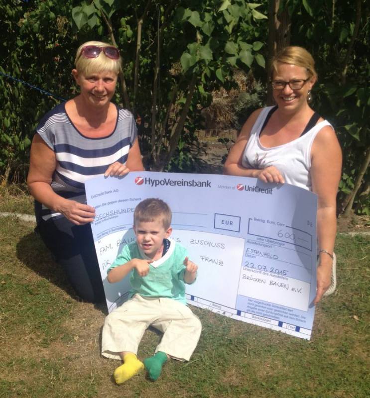 Susanne Feser (Gründungsmitglied Verein "Brücken bauen"), Silke Bauer und Sohn Franz. (V. l. n. r.). Foto: Jenifer Gabel BBSpende FamBauer 0 am 28. Juli 2015 Share. Twitter Facebook Pinterest LinkedIn Tumblr Email