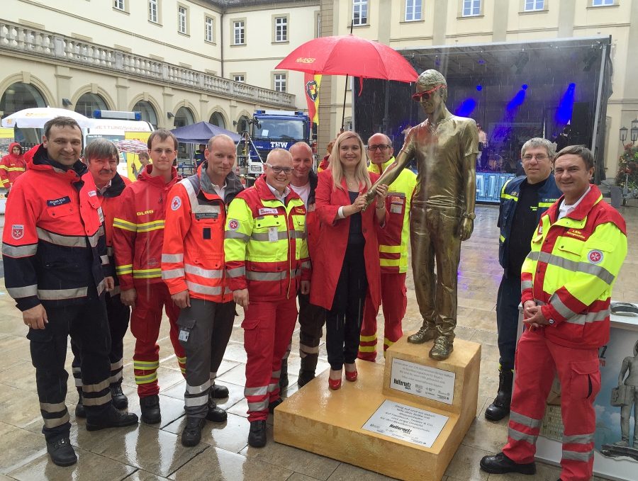 Ihren persönlichen Dank sprach Staatsministerin Melanie Huml den ehrenamtlichen Einsatzkräften aus, die sich am Samstag von 11 bis 16 Uhr im Innenhof des Würzburger Rathauses präsentierten. Foto: Johanniter/ Christoph Fleschutz