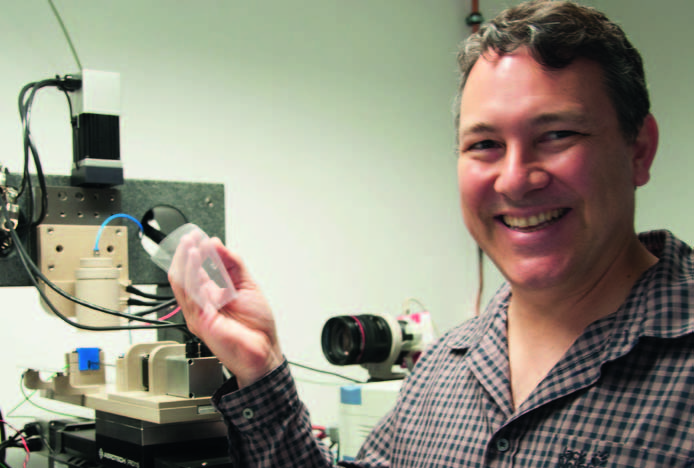 Professor Paul Dalton erzeugt winzige Strukturen, die menschlichem Gewebe nachempfunden sind. Er ist der einzige Professor für Biofabrikation in Deutschland. Foto: Michaela Schneider dalton 0 am 30. September 2016 Share. Twitter Facebook Pinterest LinkedIn Tumblr Email