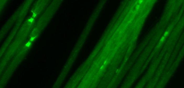 „Wir konnten feststellen, dass bei einem Teil der Patienten Antikörper gegen das Protein Caspr vorliegen“, schildert Kathrin Doppler das zentrale Ergebnis dieser Studie. Caspr ist am Aufbau der sogenannten Ranvierschen Schnürringe beteiligt – einer Struktur an der Nervenfaser, die besonders wichtig für die Weiterleitung von Nervenimpulsen ist. Die Wissenschaftlerinnen konnten zeigen, dass bei Patienten mit Antikörpern gegen Caspr der Aufbau der Ranvierschen Schnürringe zerstört wird und die Nervenleitung stark beeinträchtigt ist.