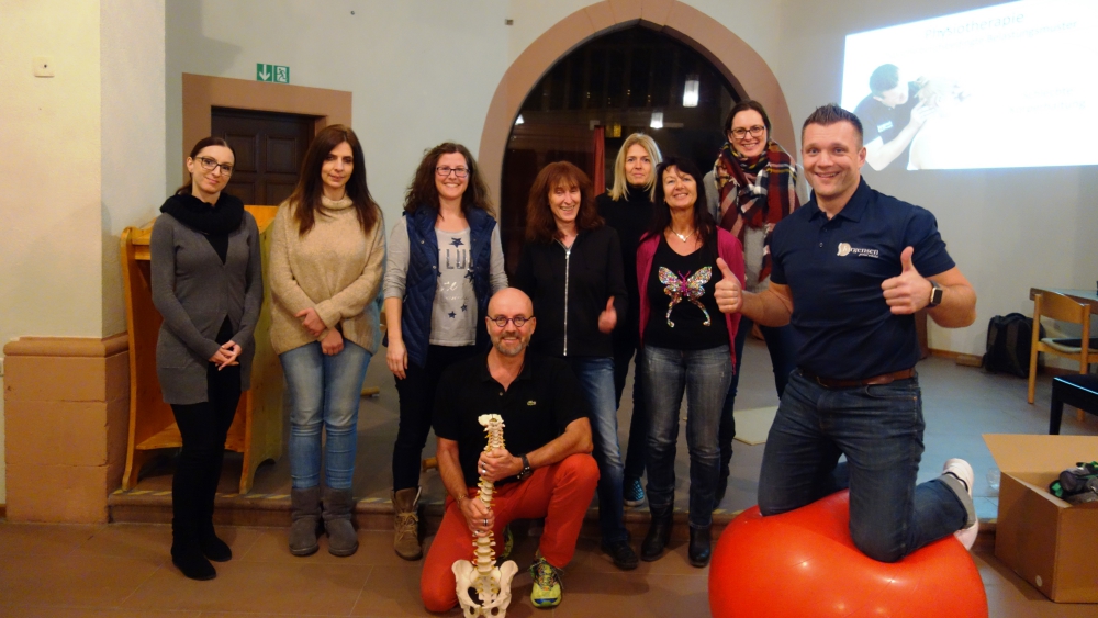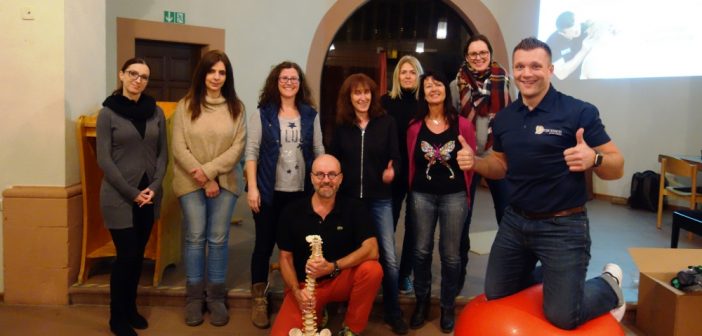 Den Auftakt machte das Lieblingsleidensthema der Deutschen, der Rücken. Sechs Unternehmen aus dem Würzburger Wesen entsandten Mitarbeiterinnen – es waren tatsächlich nur Frauen anwesend – zu einer RückenFit-Schulung in die Alte Kirche nach Waldbüttelbrunn.