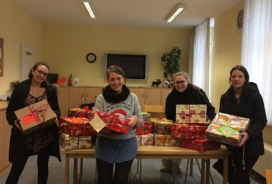 im Bild: v.l. Lorena Sarter, Luise Eichler (im Praktikum), Berit Kemper (Sozialpädagogin in der Wohnungslosenberatung), Georgia Steiner weihnachten-im-schuhkarton-2016 0 am 23. Dezember 2016 Share. Twitter Facebook Pinterest LinkedIn Tumblr Email