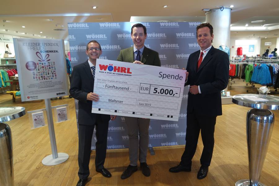 Thorsten Schmitz (Mitte), Geschäftsführer bei WÖHRL, zusammen mit Dr. Frank Becker (li.) und Alexander Pereira (re.) von den Maltesern bei der Scheckübergabe. Foto: Wöhrl SAMSUNG CAMERA PICTURES 0 am 16. Juli 2015 Share. Twitter Facebook Pinterest LinkedIn Tumblr Email