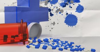 Gut sichtbar im Eingangsbereich der Theater-Apotheke in Würzburg hängt ein Plakat auf dem steht: „Alle…